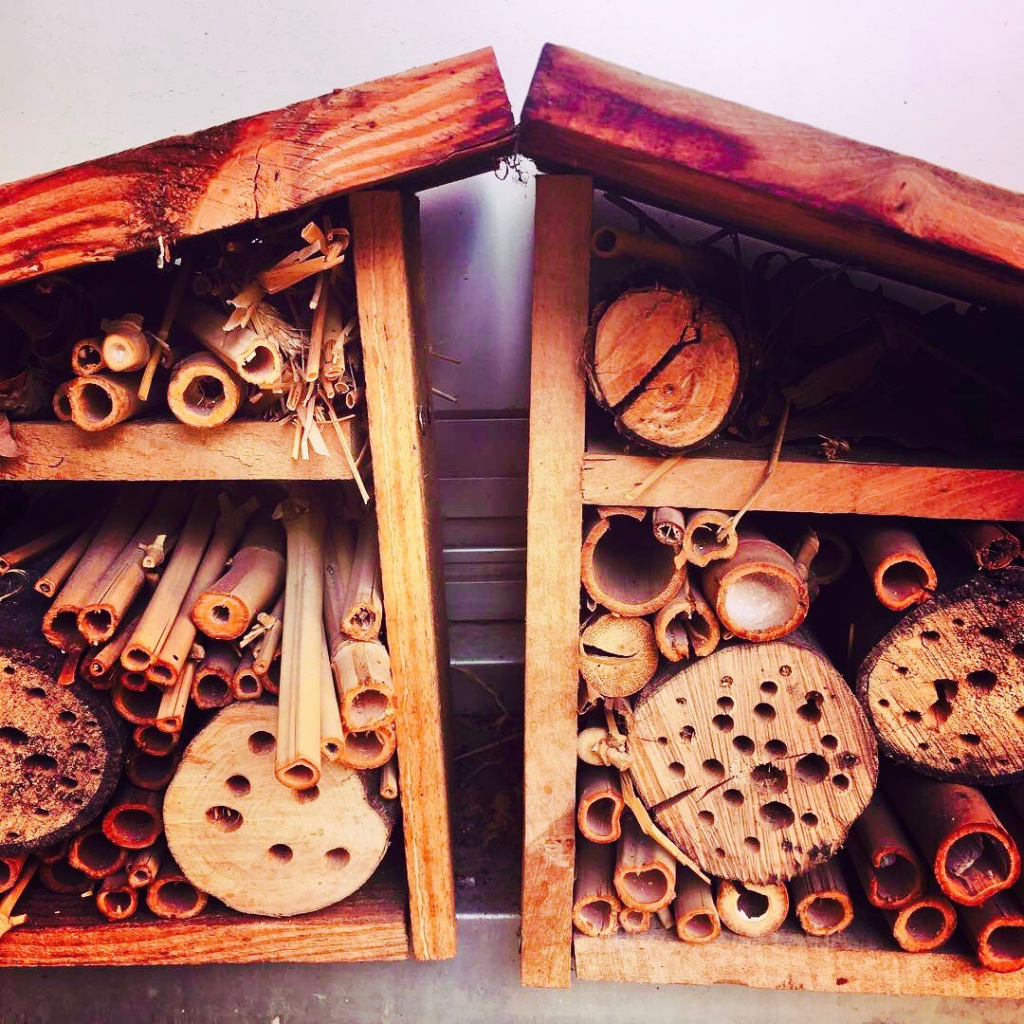 Une maison pour nos amis les insectes (j’ai oublié lesquels!) dans l’espace extérieur pour les jeunes de la Part-Dieu, Bibliothèque de Lyon (France).