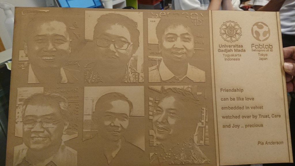 Emi Iguro responsable Fabmanager et Masakazu Kato maker actif du lieu nous ont accueilli alors qu’une délégation d’universitaire Indonésiens était en formation. Un grand merci à eux pour leur accueil incroyable !
