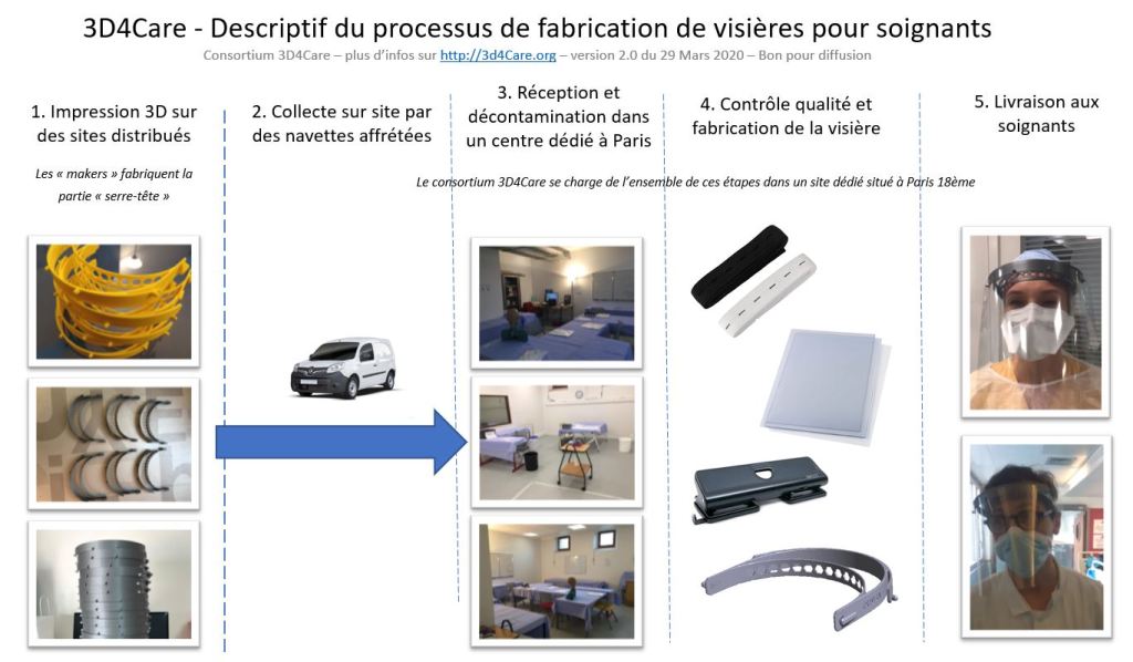 Le mouvement DIY, les Fablabs, L’Open-source ont permis de produire à l’échelle nationale plusieurs centaines de milliers de visières !