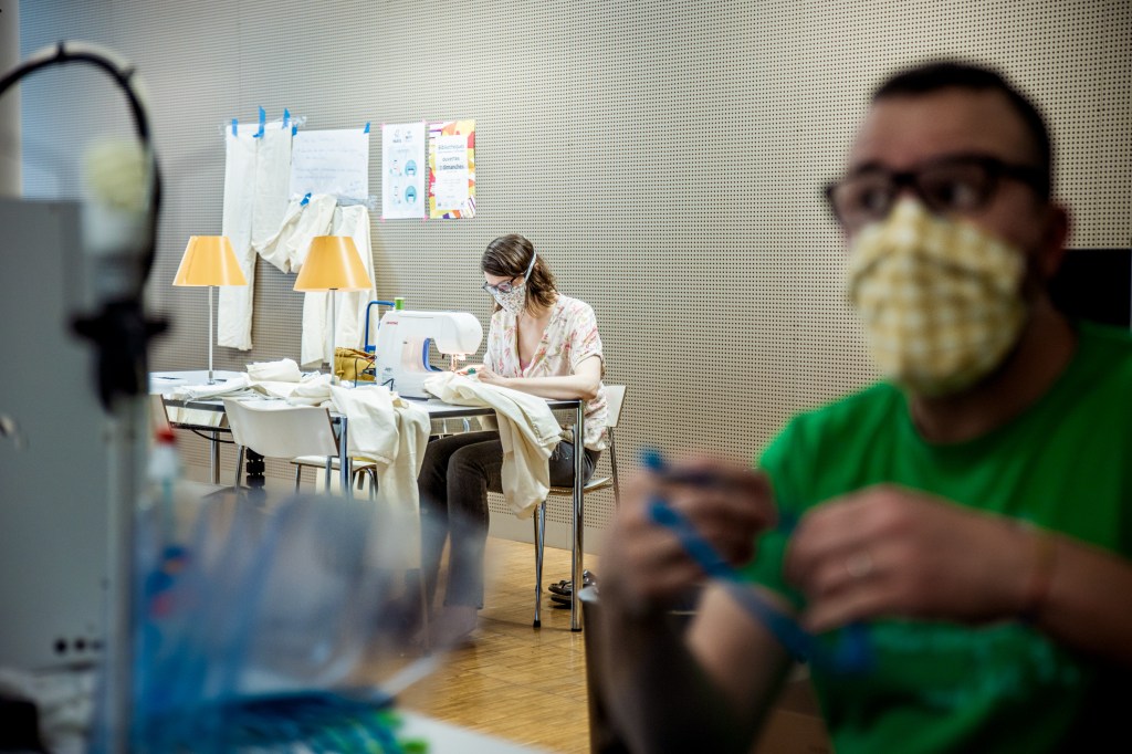 Pendant la période de confinement, contre la Covid19, les bibliothécaires de la ville de Paris se sont mobilisé.e.s pour produire masques, blouses, visières dans un fablab hébergé par la Médiathèque Marguerite Duras Paris 20ème.