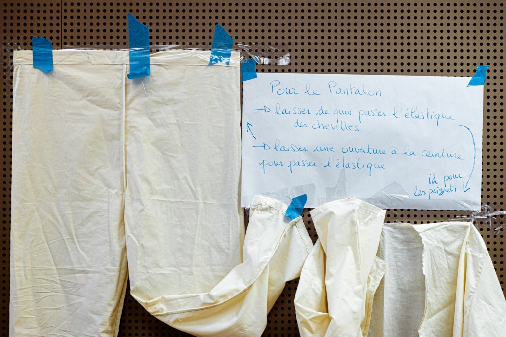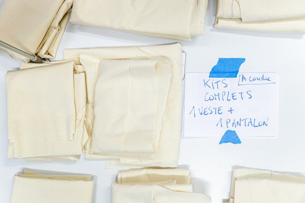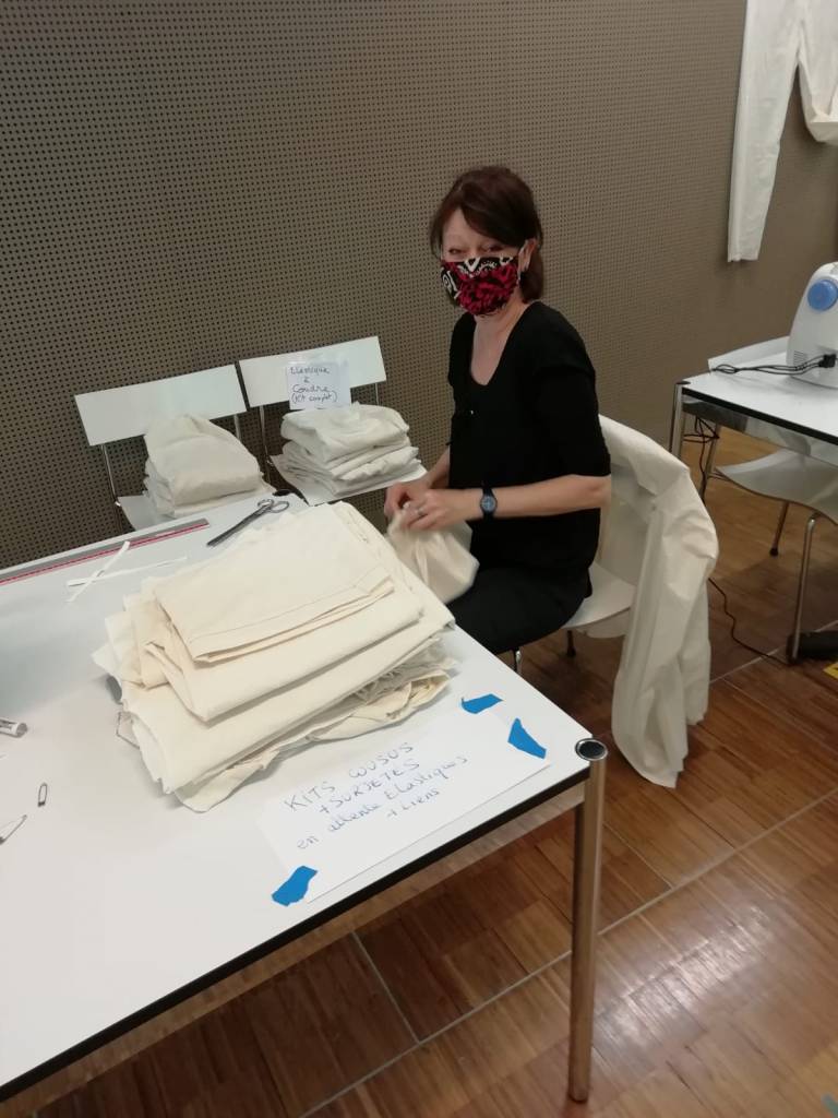 Côté textile, là aussi, le collectif a permis de monter en un temps record un atelier pour débiter des rouleaux de coton, respecter des cotes précises, ajuster les fournitures en mercerie et finalement réinventer le taylorisme dans une salle de lecture !