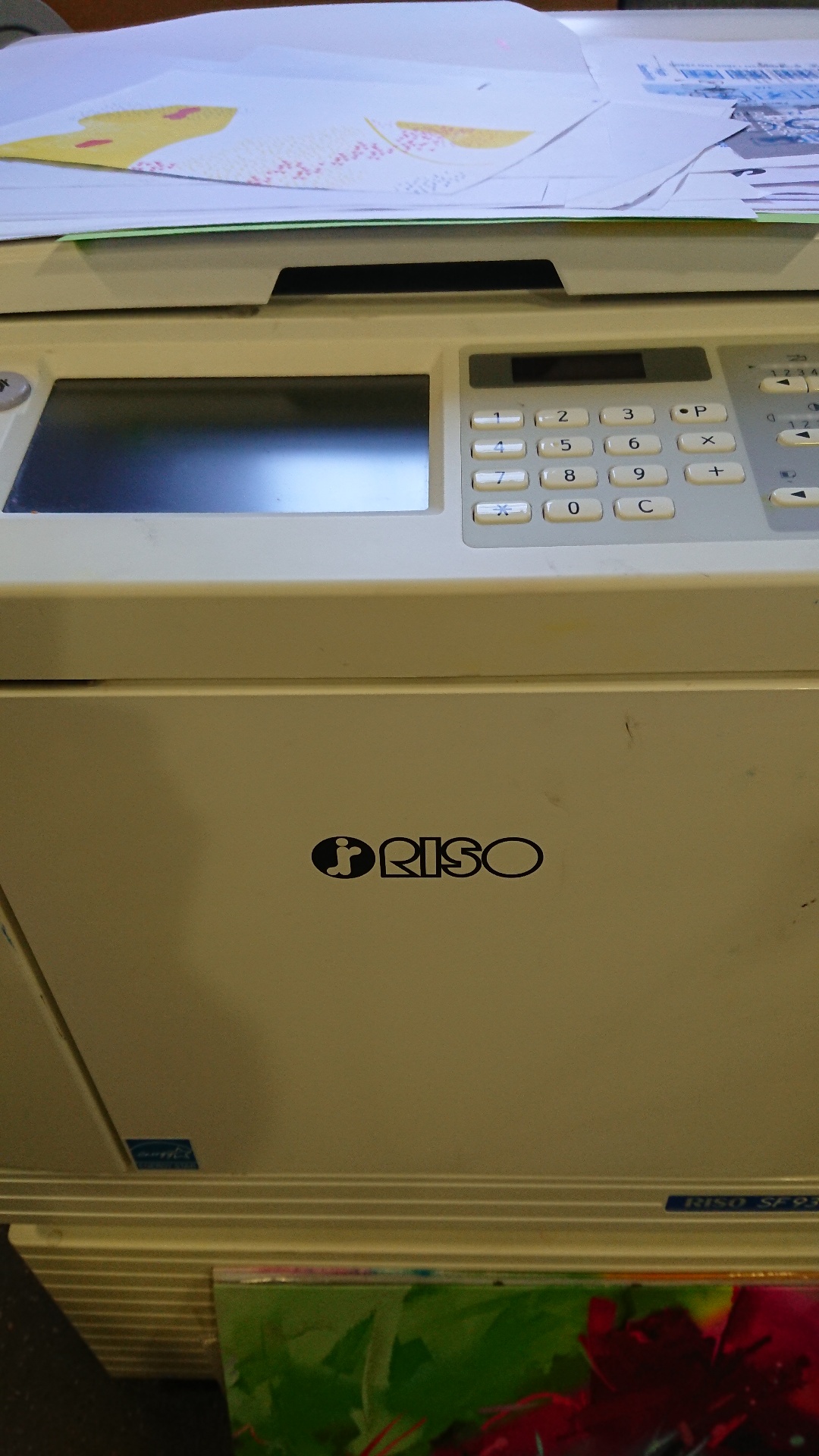 Nous découvrons cette machine « La Riso » qui de prime abord ressemble à un simple photocopieur. C’est en fait bien plus que ça !