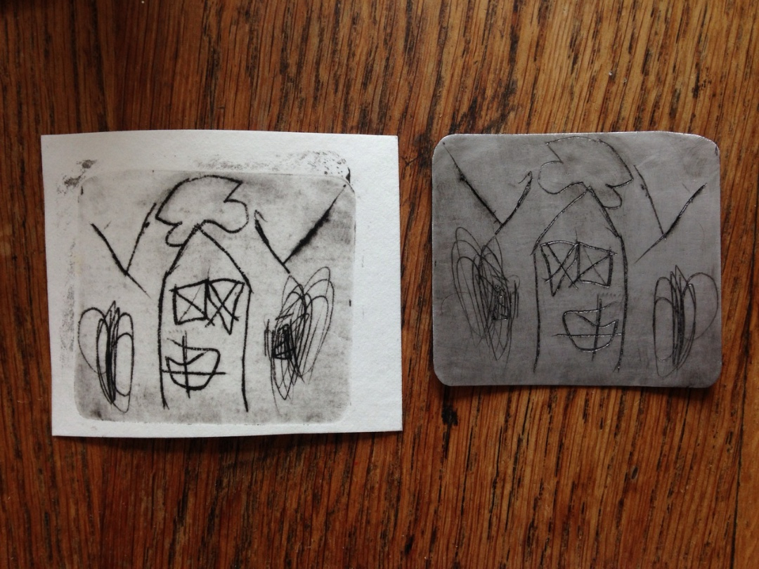 Suivant les conseils d’Isabelle Lin, illustratrice et artiste graveur, qui était en résidence en 2021 au Simplon Lab Nous avons testé la technique de gravure à la pointe sèche (taille douce) sur TetraPak (oui, oui la brique de lait ^^)