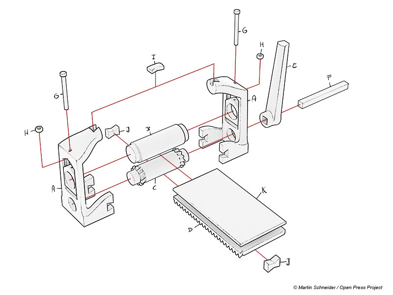 Conçu par Martin Schneider, la presse d’impression portable open source est réalisable pour toute personne ayant accès à une imprimante 3D souhaitant réaliser ses propres estampes.