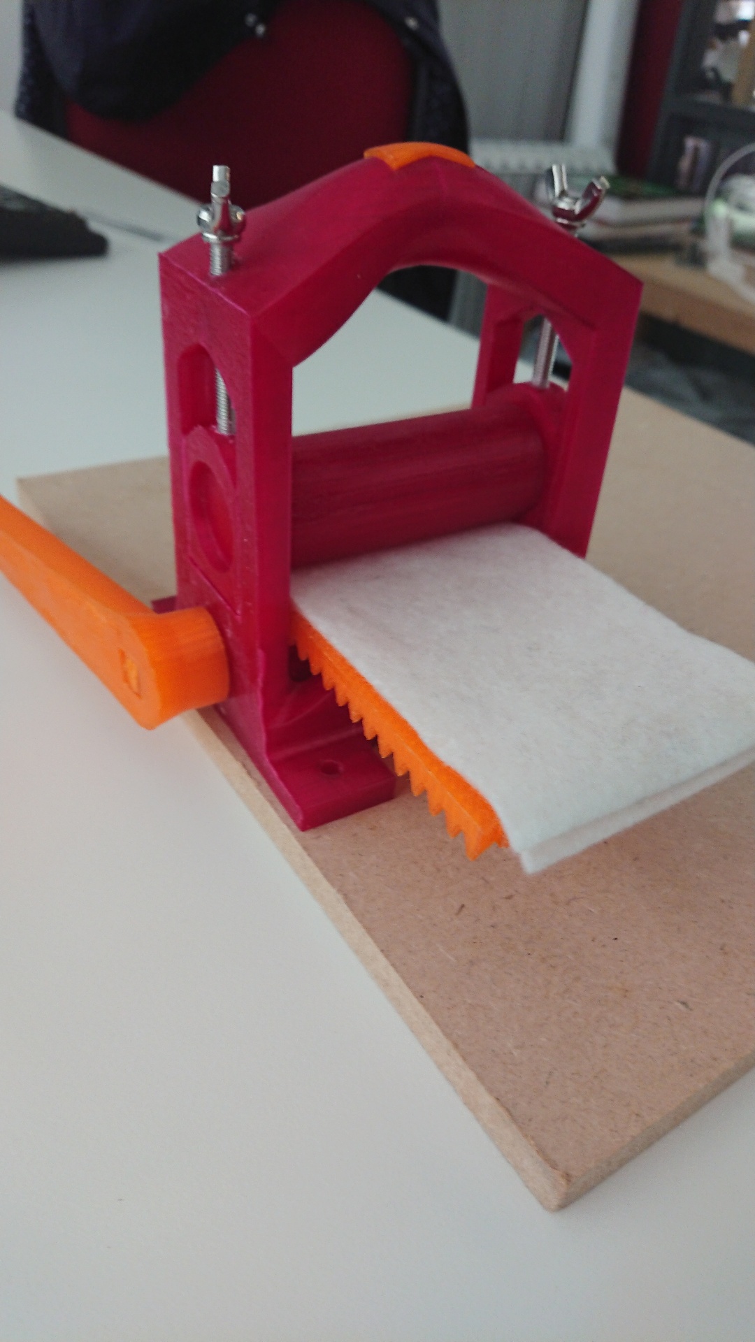 Pour l’Impression de cette Open-Press. Remplissage 50%; qualité 0.15 mn. (sauf deux montants extérieurs 25 %) PLA violet cristal ColorFAbb et Copolyester (PETG) NGen Colorfabb orange : Dureté et résistance produits chimiques.