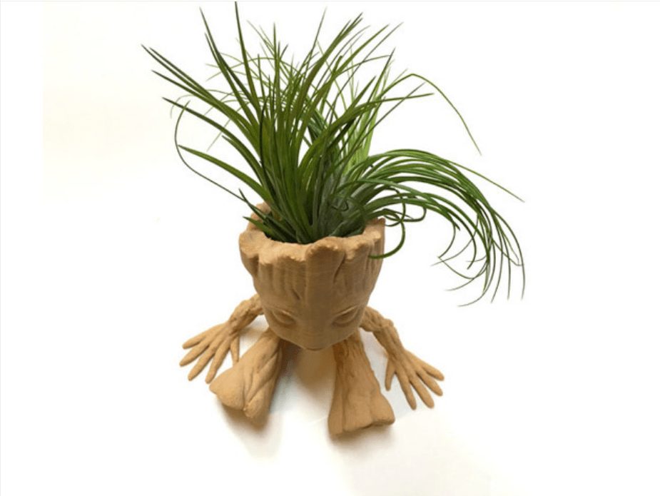 Baby Groot air plant planter : La tête du malheureux Groot a été évidé pour servir de jardinière à un Tillandsia ou « plantes aériennes » qui n’a pas ou peu besoin de terre.
