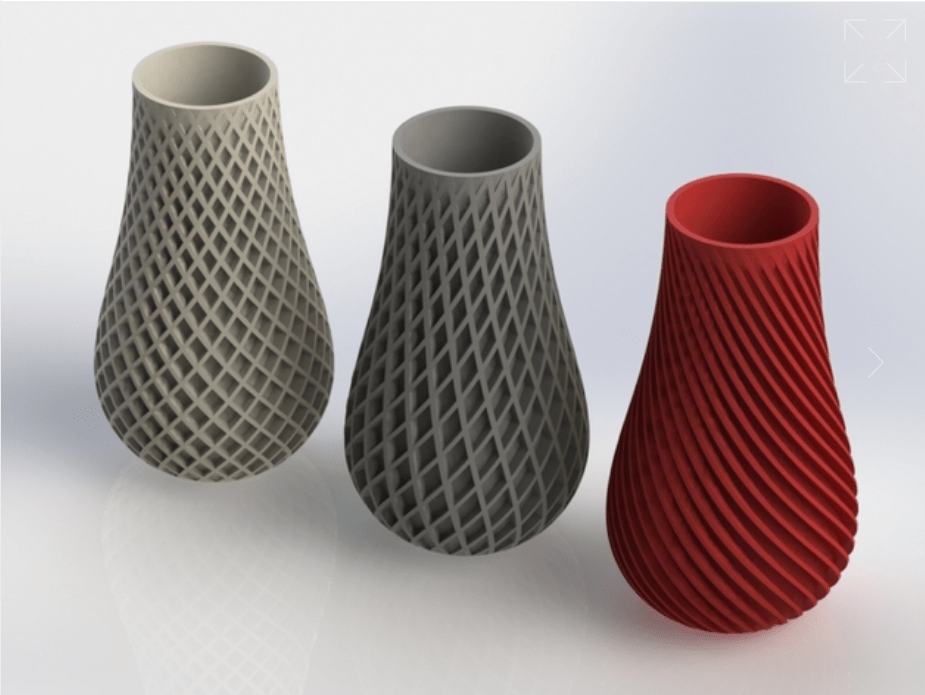 « Spirale vase » Une déclinaison de vases en spirale très designés. D’une hauteur de 150 mn (peut être modifiée en fonction des capacités de votre imprimante) ; Impression à 0.2 mn sans support, remplissage 100 %. Vous pouvez activer le mode « vase » de votre slicer s’il le propose. (XX version de Cura)