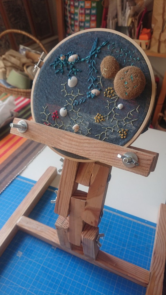 Nous parlons ici d’un ustensile très pratique pour les brodeuses manuelles. Il permet de tenir à hauteur, devant soi le travail en court.